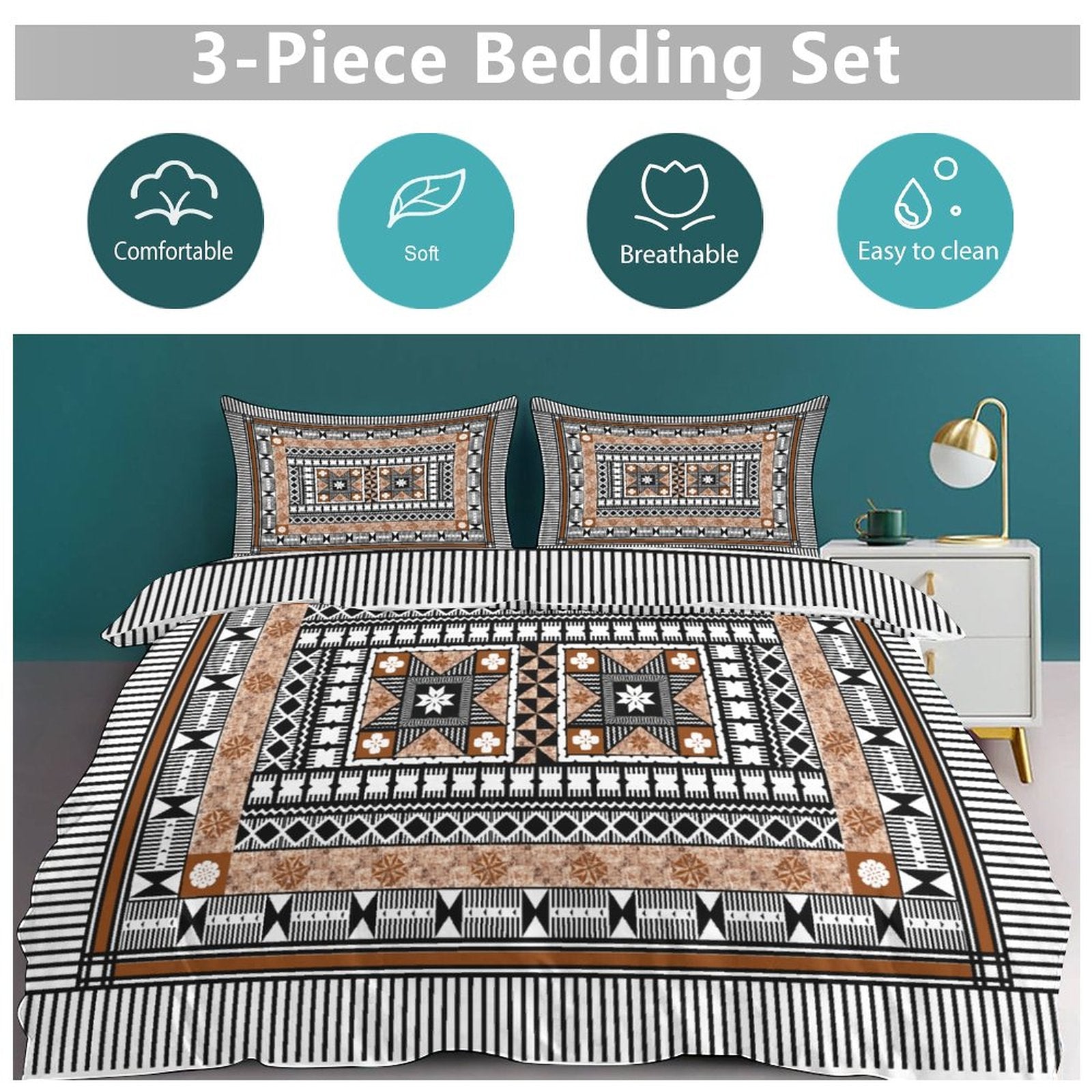 Fiji Masi 3-Piece Bedding Set-90"x90"/ 229x229cm (Dual-sided Printing) 5