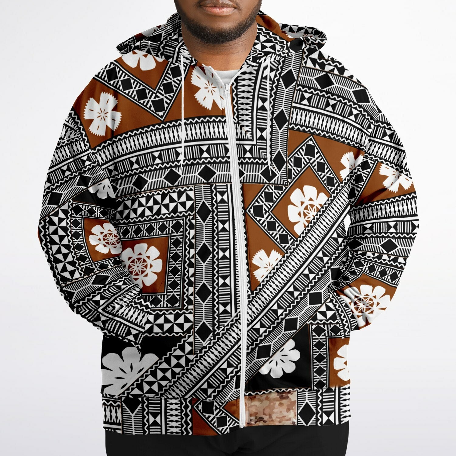 This plus-size ziphoodie features a soft and durable fabric that has a cotton feel to it. The brushed fleece on the inside will make this your most comfy ziphoodie ever! It also comes with a visible nylon zipper front closure. Each panel is individually printed, cut and sewn to ensure a flawless graphic with no imperfections.